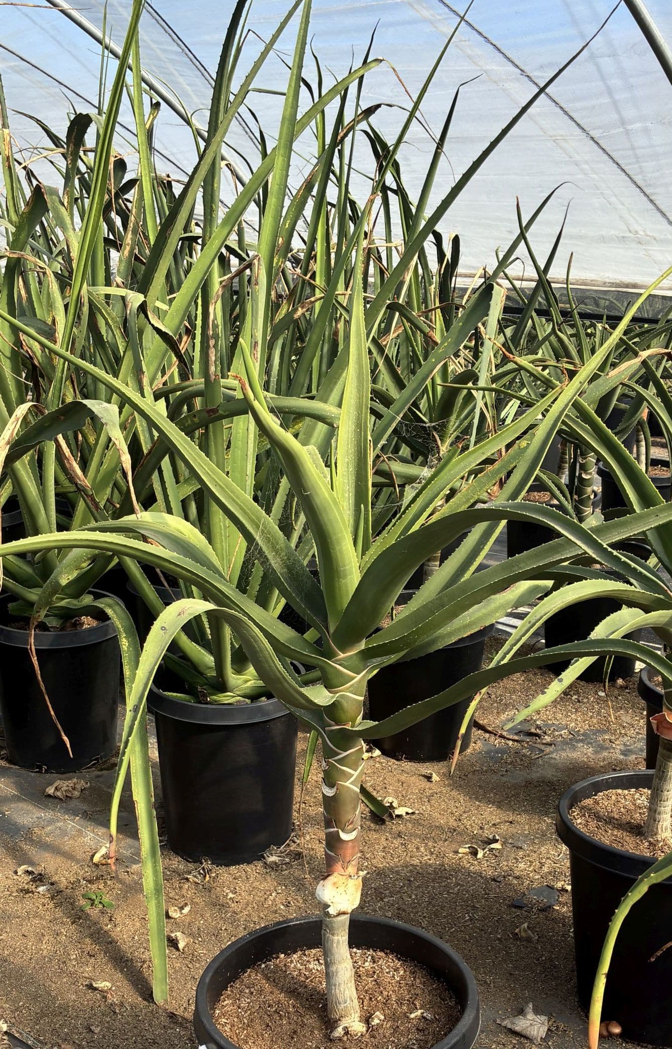 Aloe bainesii es un árbol suculento conocido por su gran tamaño y forma arbórea, con un tronco grueso, bifurcado y gris, y tallos ramificados de corteza gris moteada y flores de color rosa-rosado o naranja que florecen en invierno. Ideal como acento solitario, punto focal o planta grande en maceta. Prefiere pleno sol a sombra parcial (especialmente en climas cálidos del interior). Mejor en suelo franco bien drenado, pero crecerá en suelo arenoso o rocoso. Resistente a ciervos y conejos. Resistente al fuego. Resistente a la marchitez por Verticillium. Resistente al frío hasta 25°F.