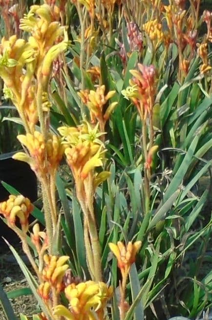 Anigozanthos ‘Bush Tango’ is a compact, evergreen perennial hybrid known for its fuzzy, bright orange, kangaroo-paw-shaped flowers that bloom from spring to fall on 2-3′ stalks. Thrives in seacoast and Mediterranean conditions. Can be used in mass plantings, borders, containers, small spaces, xeriscaping, rock gardens. Full sun is required for best flowering, though it tolerates light shade. Moderate to low water needs, drought-tolerant once established. Prefers well-drained, slightly acidic, sandy, loamy, or gritty soil. Deer and rabbit-resistant. Improved resistance to Ink Spot disease. Resistant to Verticillium Wilt. Fire-retardant. Cold-hardy to 25°F.
