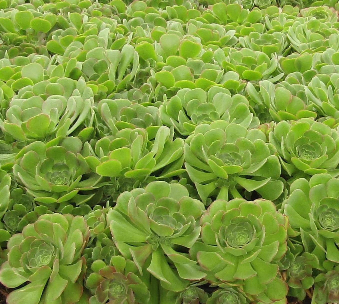 Aeonium ‘Mint Saucer’ is a shrubby, drought-tolerant succulent that features mounds of light-green, mint-colored rosettes and yellow to golden, star-shaped summer flowers. Used as an accent, border, low hedge, in containers. It is monocarpic; individual rosettes die after flowering, but the plant produces new, non-flowering pups. Requires well-draining, sandy, or rocky soil. Drought-resistant; water sparingly, particularly during Aeonium summer dormancy. Prefers full sun to part shade (needs protection from intense, direct summer sun in hot, arid climates). Generally insect and disease-resistant. Deer and rabbit-resistant. Fire-resistant. Cold hardy to 25°F for short periods, but should be kept above freezing. Best when temperatures are between 65-80°F.