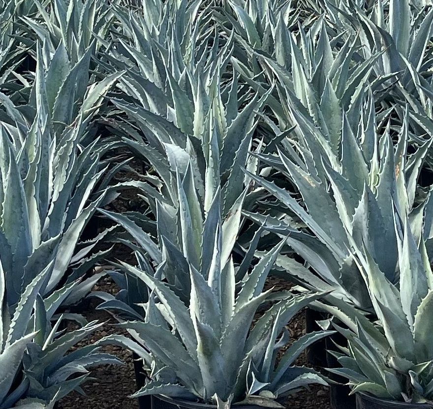 Agave americana is a large succulent with a rosette habit, spiny, grey-green leaves, and growing 6–10′ tall and wide. It produces a 20–30′ tall yellow flower spike after 10–30 years. Ideal for hot, arid, or coastal landscapes as a specimen plant, hedge, or barrier due to sharp spines. Prefers sandy, gritty, or rocky well-drained soils. Monocarpic. Deer and rabbit-resistant. Fire-resistant. Cold hardy to 20°F.