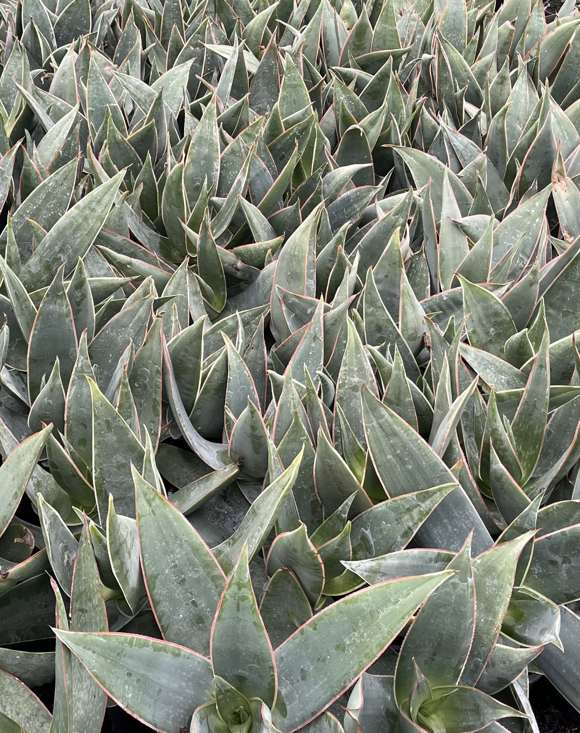 Aloe striata is a stemless, solitary succulent known for its broad, smooth-margined blue-green leaves that turn pink in sun and coral-red to orange flowers in winter/spring. Excellent for rock gardens, xeriscaping, succulent gardens, and containers. Can also be used in mass plantings or as a low-profile hedge. Prefers a well-drained, sandy, or gravelly soil. Best in full sun to light or partial shade (especially in hot, inland climates). Low water use, but the leaves will be more plump with extra watering. Fire-resistant. Salt-tolerant. Deer and rabbit-resistant. Cold hardy to 25°F.