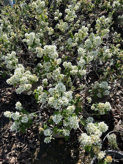 Amelanchier alnifolia ‘Regent’ is a compact, hardy, deciduous shrub featuring white spring flowers, edible, dark-blue summer berries, and bright yellow-to-red fall foliage. The spreading, dense foliage makes it excellent for compact hedges, windbreaks, or a privacy screen. It takes full sun (best fruit production) to part shade (better in hot, inland climates). Tolerates clay, sandy, loamy, and alkaline soils. Has moderate water needs, but drought-tolerant once established. Resistant to Verticillium Wilt. Fire resistant. Cold hardy to -50°F.