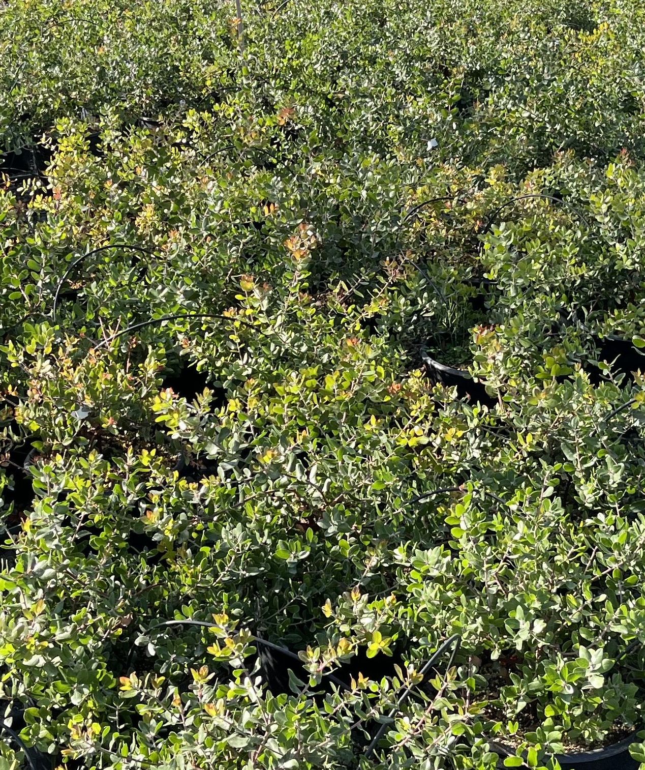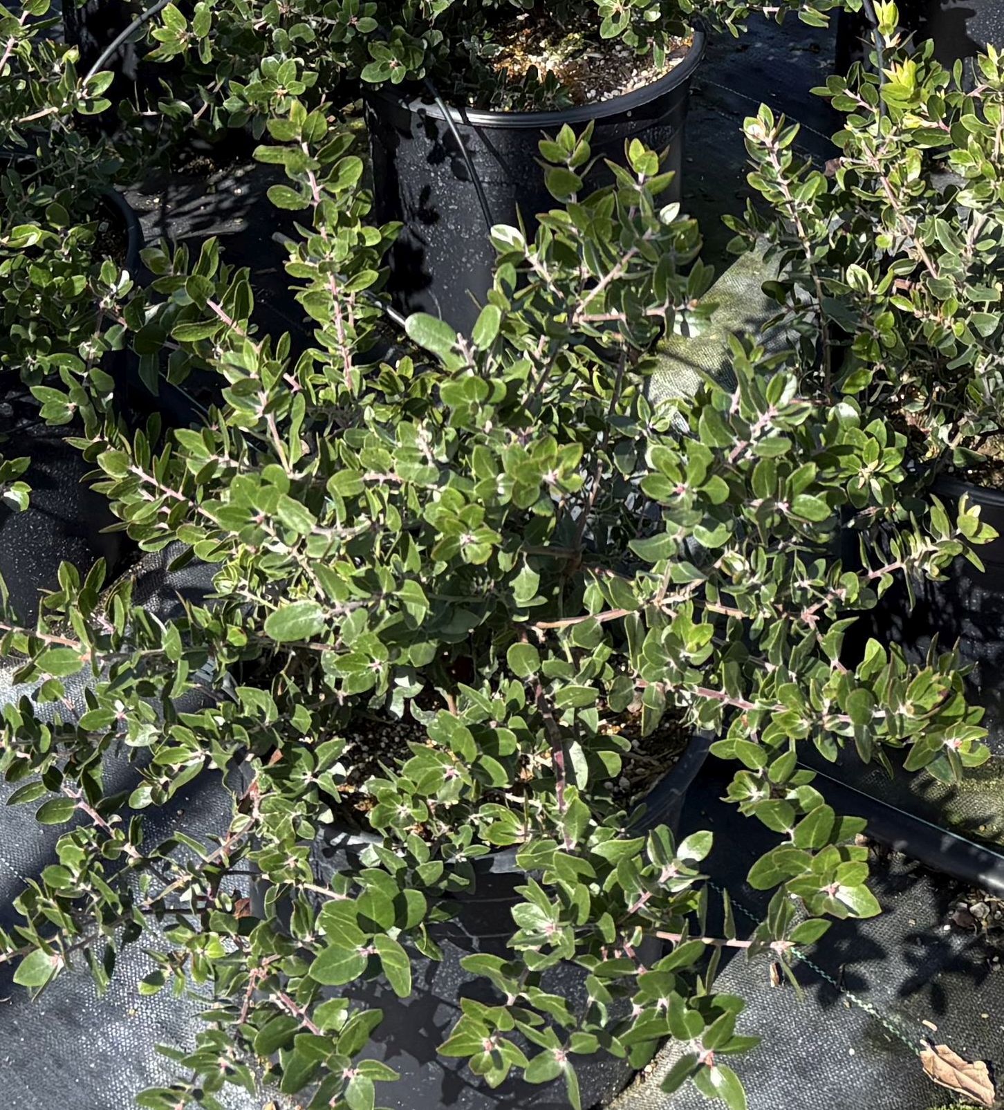 Arctostaphylos ‘Sunset’ is an evergreen shrub featuring coppery-red new foliage, pinkish-white flowers in winter/spring, and reddish, peeling bark. Excellent as a screen, hedge, or specimen plant. Ideal for Mediterranean-style gardens, banks, slopes, weed suppression, erosion control. Best in full sun; tolerates light afternoon shade, especially in hot inland areas. Requires low to no summer water once established. Thrives in well-drained, acidic, rocky, sandy, or clay soils. Deer and rabbit-resistant. Verticillium wilt resistant.Cold hardy to 0°F.