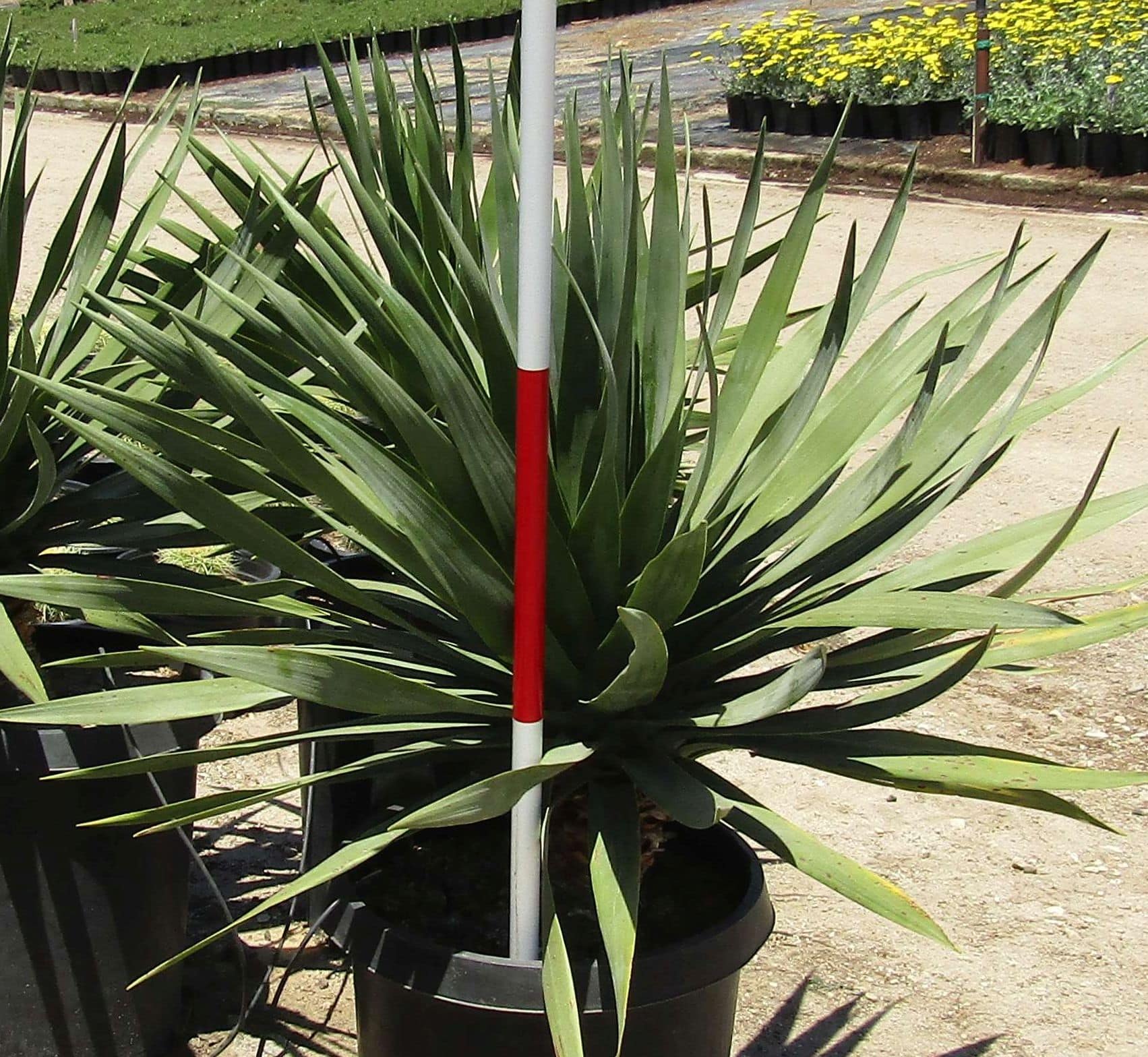 The Dracaena draco is commonly called the dragon tree, a slow-growing, evergreen tree native to the Canary Islands, Madeira, and western Morocco. It has a palmlike habit, notable for its thick, gray bark and blue-green, sword-shaped leaves. This drought-resistant plant thrives in full sun, and is deer resistant. It has white to green flowers in summer and orange fruit in the fall. It produces a red resin called “dragon’s blood” when its bark or leaves are cut. Cold hardy to 20-25°F.