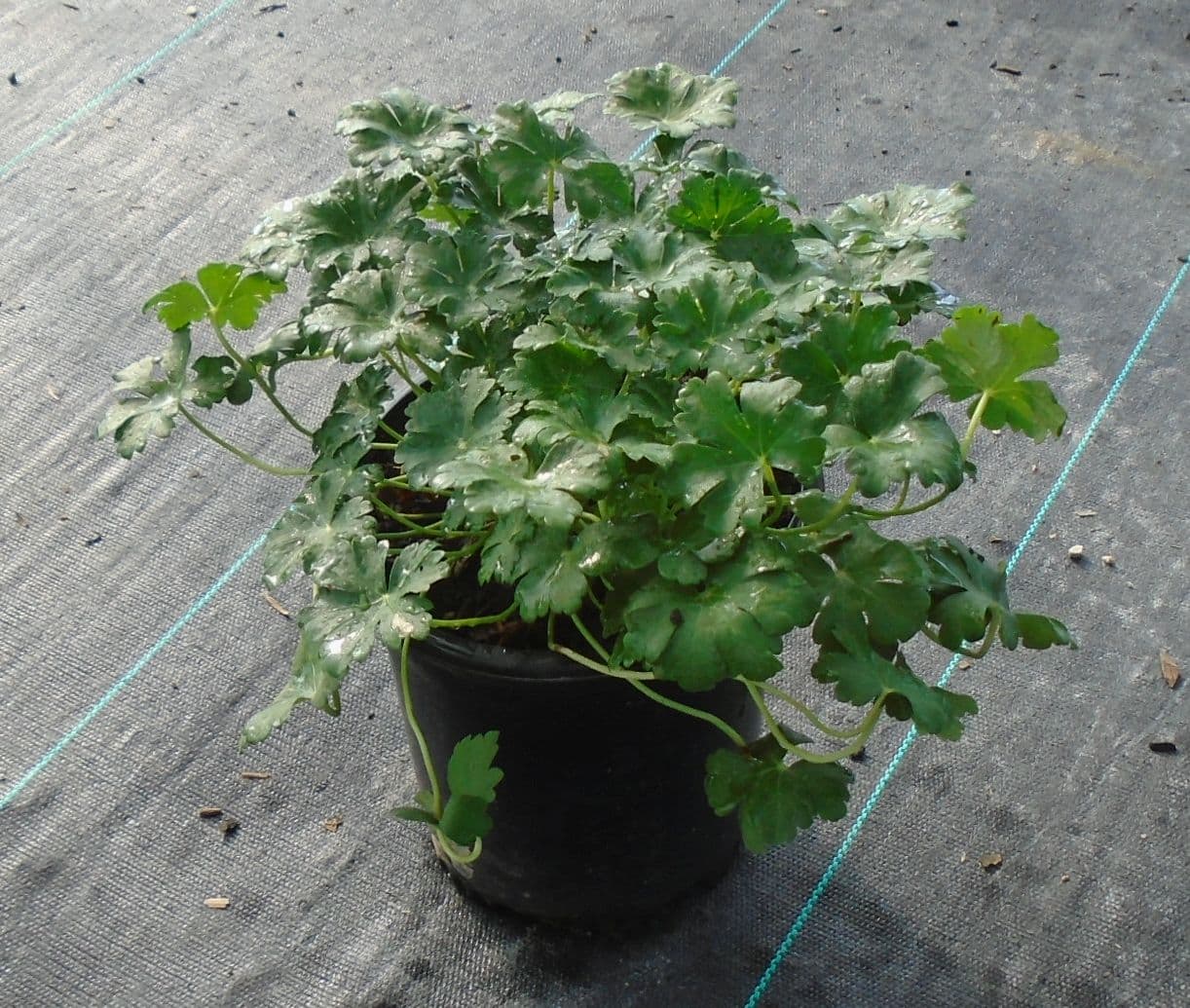 Geranium x cantabrigiense ‘Biokovo’ is a hardy, fragrant, semi-evergreen perennial hybrid groundcover with pink-flushed white flowers in late spring/early summer. Tolerates sun to part shade, though needs good drainage. Attracts pollinators and is deer/rabbit resistant. Excellent for edging/low groundcover, borders, rock gardens, and as an erosion control plant.