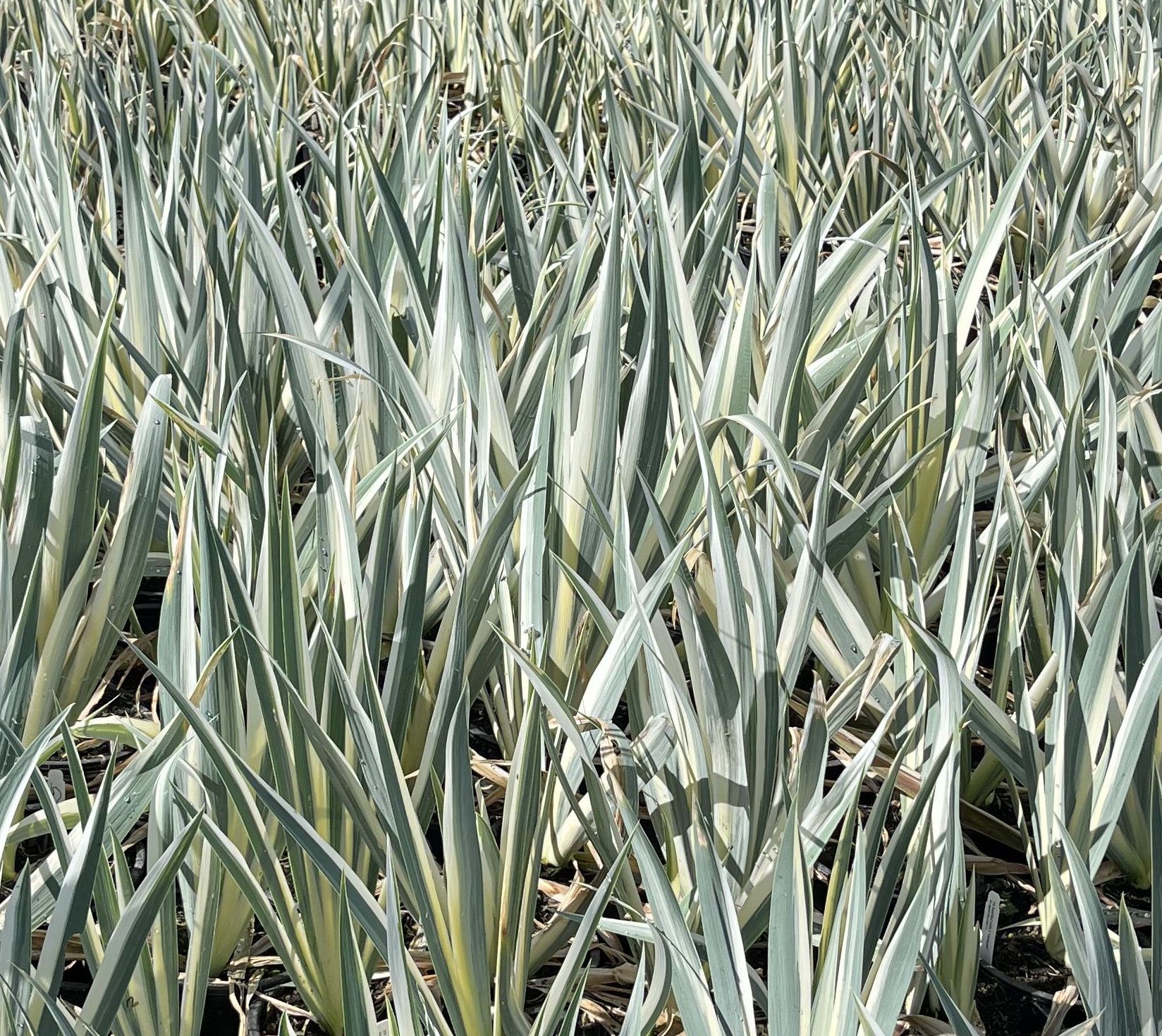 Iris pallida ‘Variegata’ is a perennial known for its striking green/yellow striped foliage, producing pale lavender flowers in late spring/early summer. It is best in full sun, but tolerates partial shade. Drought tolerant in well-drained soil and cold-hardy. Ideal for borders, rock gardens, edging, and mass plantings.