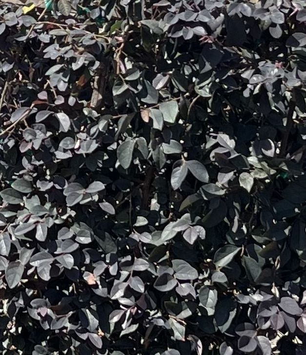 Loropetalum chinense ‘Carolina Midnight’ is a fast-growing evergreen cultivar known for its deep burgundy foliage and fuchsia flowers. Best in acidic soil and moderate water. It’s upright habit makes it an excellent plant for growing on a trellis, as a screen, or as a small tree.