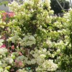 Vines are woody or perennial plants that grow through the elongation of the stem and climb vertically or horizontally, depending on how they are trained. Vines are not strong enough to support their vertical growth without support. Many vines naturally attach to walls and fences with their stems, tendrils, or suction disks or claws, though some need tying in order to attach to their supports. They are invaluable additions to landscapes and are used to decorate walls, cover arbors, and climb fences. In addition to softening hard vertical surfaces and edges, many vines display showy flowers for long periods of time.