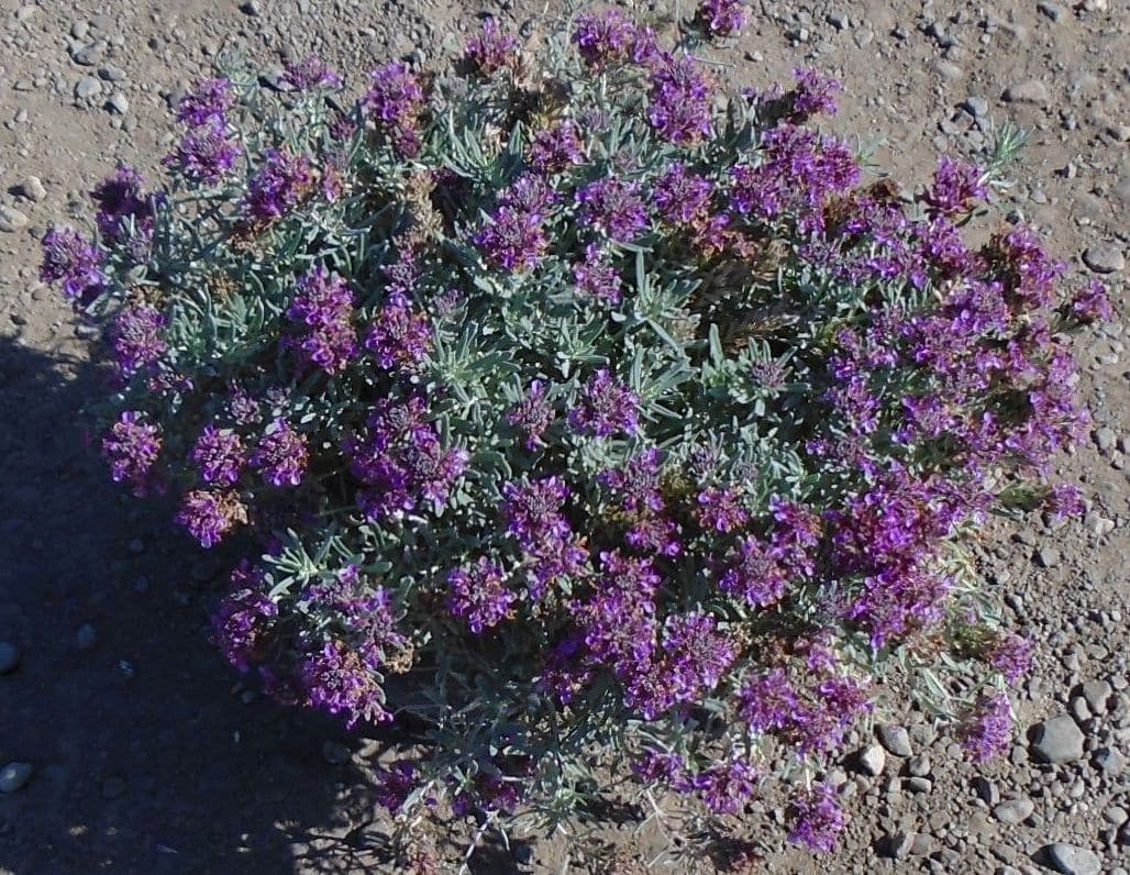 Teucrium cossonii is a low-growing, drought-resistant evergreen perennial shrub. It features aromatic, narrow gray-green foliage and lavender-pink flowers in spring to summer. Sometimes erroneously labelled T. aroanium. It thrives in full sun and well-drained, sandy, or rocky soil. Ideal for rock gardens, dry banks, and as a small-scale groundcover. Generally, pest and disease-free. Fire-resistant. Cold hardy to 0°F.